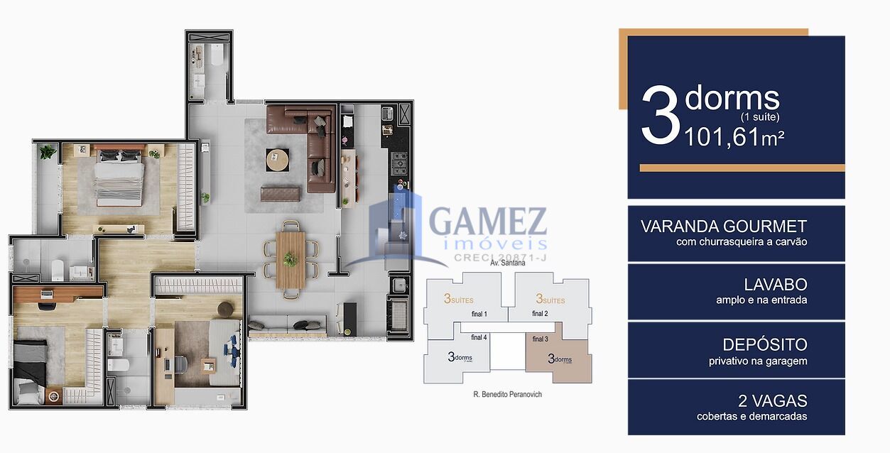 3 Dormitórios, sendo 1 suíteSituação